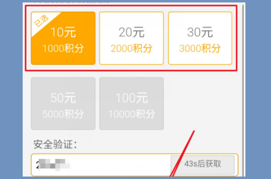 进入话费兑换页面之后,系统会显示积分兑换话费所需要的数量,选择用户可以支付的积分选项之后,点击下方的“确认”。
