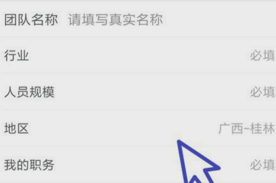 3、填写企业的名称、行业类型、人数规模、所在地区、个人职务后,再添加企业内的成员。