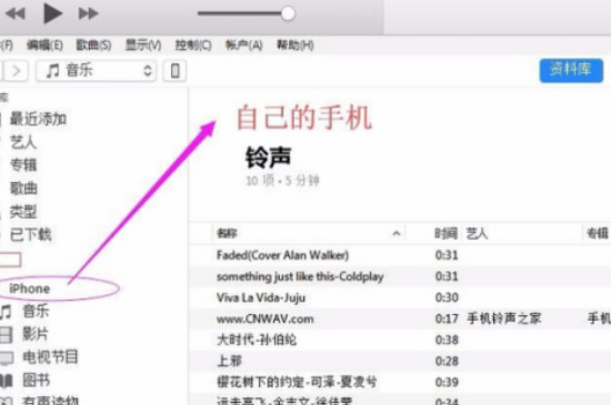 提前下载的铃声一定要是M4R的格式,并且不能超过40秒,下载好准备的铃声之后就可以拖入iTunes软件中了。此时点击设备里的手机,选择铃声之后保存到铃声列表里,再用手机打开设置中的“电话铃声”就可以看到下载的铃声了。