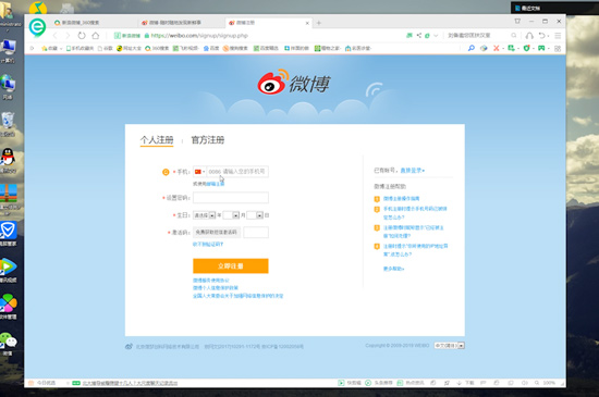 1、进入电脑桌面后,打开浏览器并搜索新浪微博进入登陆界面。