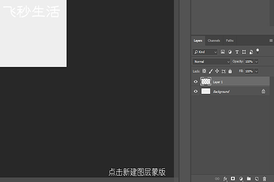打开ps,新建纯白图像文件。右下方点击添加图层蒙版,然后选择渐变工具,在新建图层上从左到右拉出一条直线,即可发现图层已被填充上了渐变颜色。
