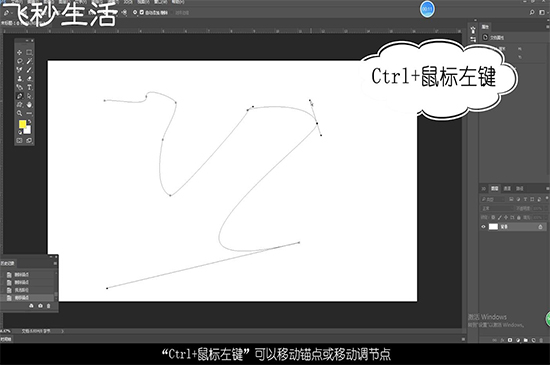 “Ctrl+鼠标左键”可以移动锚点或移动调节点,“Alt+鼠标左键”可以转换点,“方向键”可以对锚点位置进行微调,“shift+鼠标左键”可以新建水平或垂直锚点。