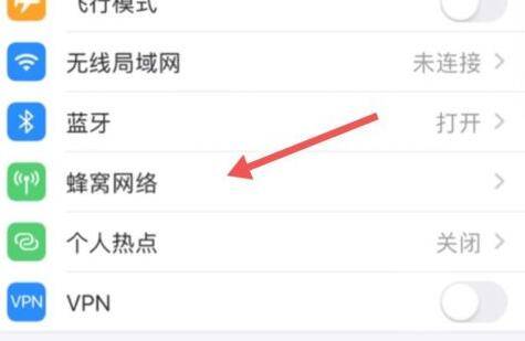 2、在设置的页面找到并打开“蜂窝网络”。