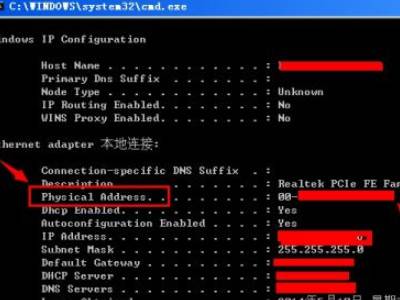 按回车键确定,可以看到一个Physical Address,这就是mac地址。