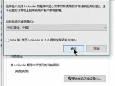 在弹出页面下拉选择“中文(简体,中国)”,然后点击“确定”。