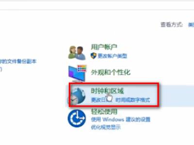 点击打开“控制面板”,点击选择“时钟与区域”选项。
