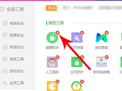 我的工具处于可编辑状态后,点击健康助手图标上的“×”。