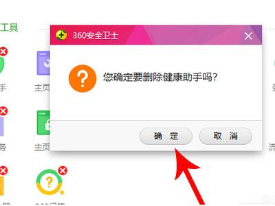 点击后系统打开提示弹窗,确定要删除健康助手时点击“确定”即可。
